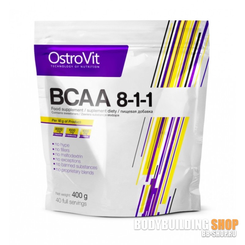 Вы можете купить BCAA 8:1:1 (400г) в магазинах BODYBUILDING SHOP города Звенигород по низкой цене. OstroVit \ BCAA BCAA 8:1:1 (400г): описание, фото, состав, отзывы покупателей, инструкция по применению.